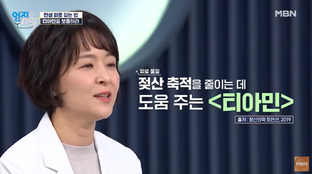 티아민은 체내에서 탄수화물을 분해하여 에너지를 만드는 데 필수적인 보조 효소 역할을 합니다. 이 과정이 원활하지 않으면 에너지 생성이 줄어들고 피로가 쉽게 쌓이게 됩니다. 피로가 쌓이면 만성피로가 되고 특히 만성피로는 젖산의 축적을 억제하여 근육통과 피로감을 줄이는 데 도움을 줍니다.