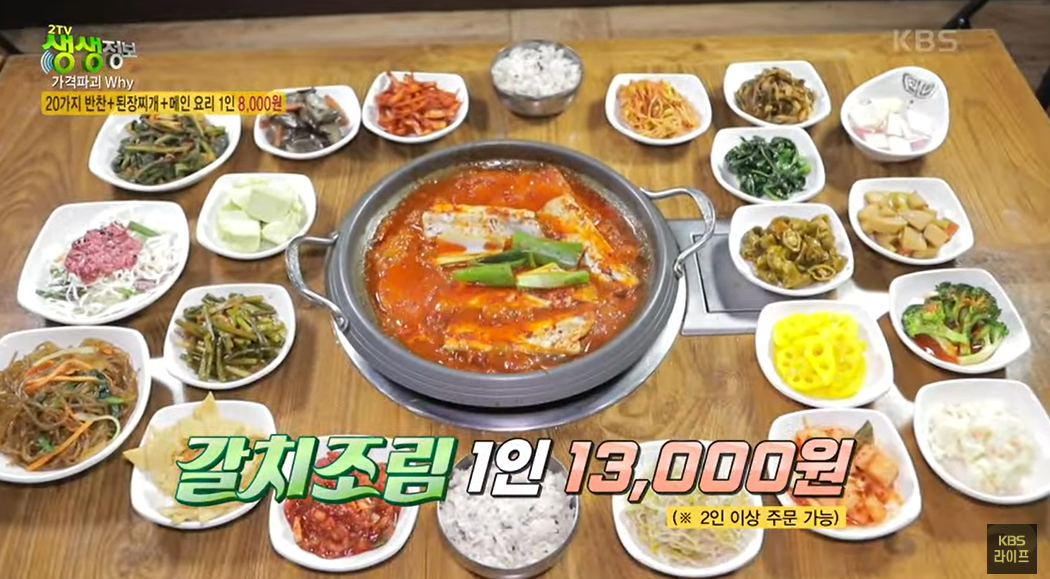 - 갈치조림: 1인 13,000원