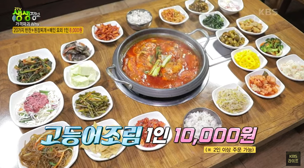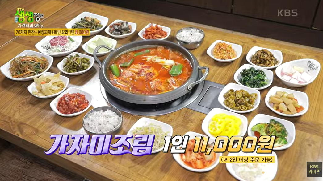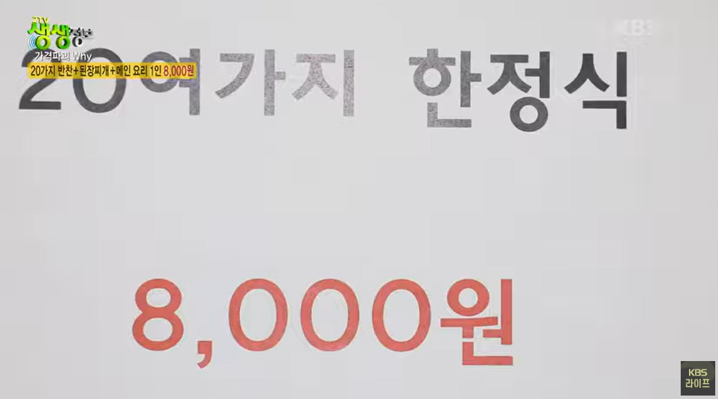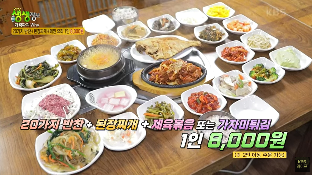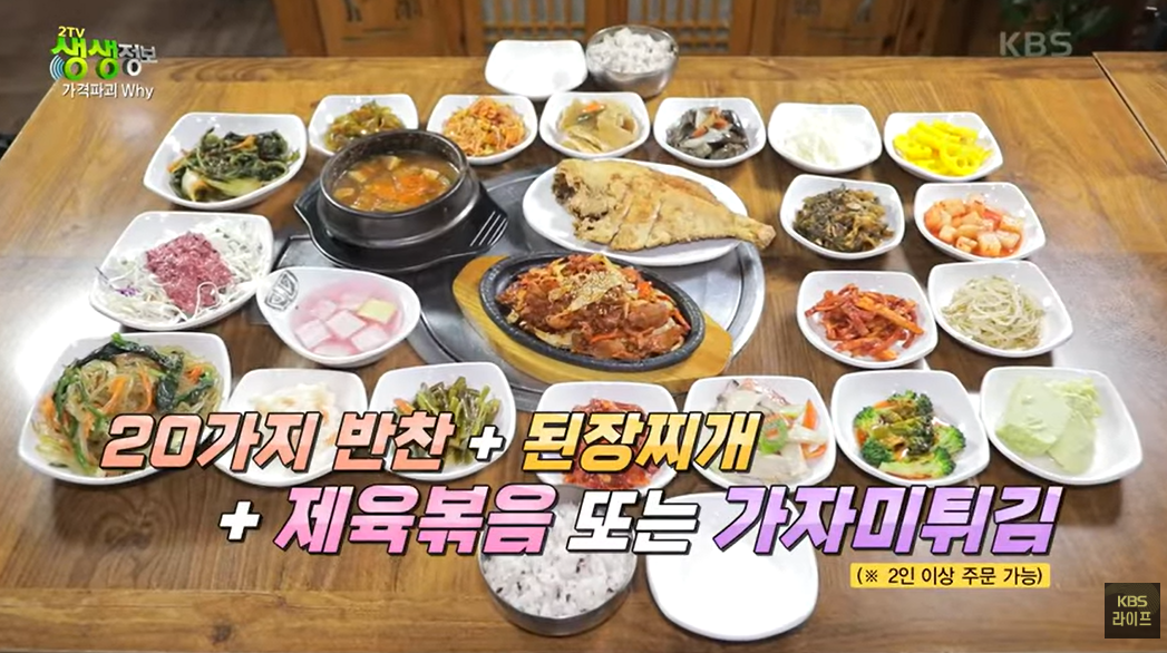 생생정보 가격파괴 Why에서 방영된 [20가지 반찬 무제한 제공! 한정식의 끝판왕]식당을 소개합니다.